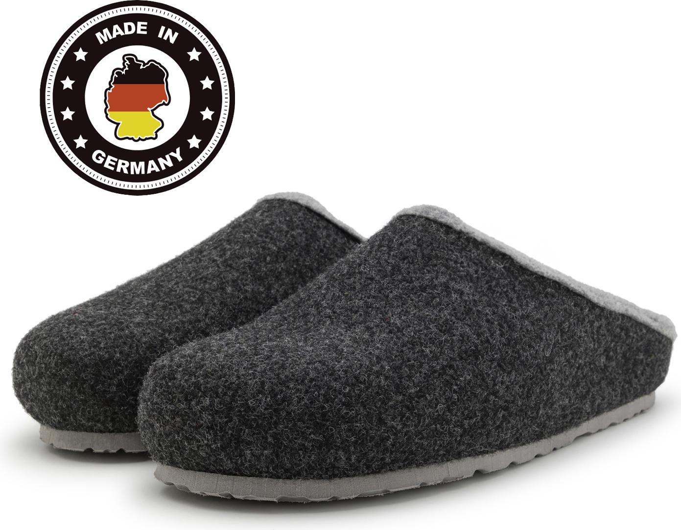 Wir stellen unsere Hausschuhe in Deutschland her und achten auf deutsche Qualität und Wertarbeit. Die Filzpantoffeln verfügen außerdem über eine extra starke und rutschsichere Gummilaufsohle, sodass keine Rutschgefahr besteht.