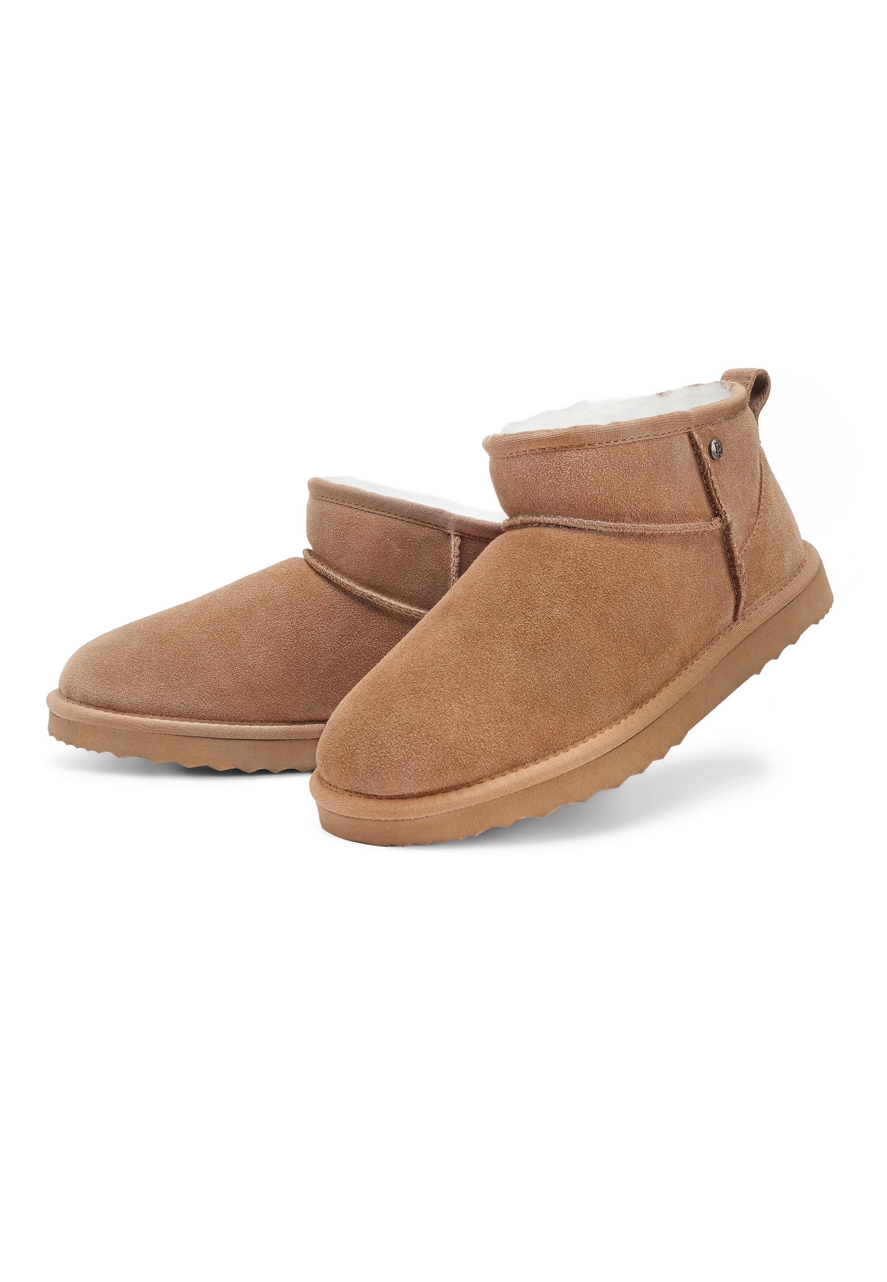 Das Obermaterial besteht aus hochwertigem Rindsveloursleder, das robust und elegant zugleich ist. Das Innenfutter und die Decksohle sind vollständig aus 100% australischem Lammfell gefertigt.