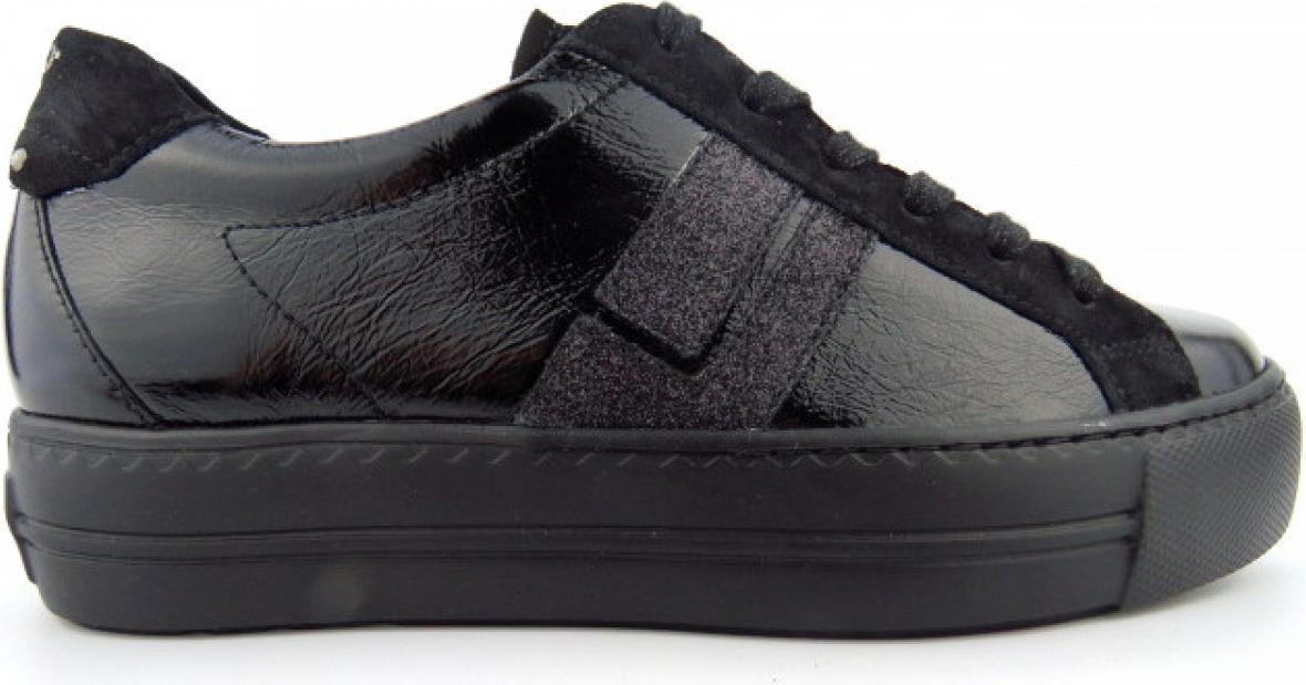 Dieser Low Sneaker von Paul Green zeigt, wie modern Eleganz im Alltag aussehen kann: Schwarze Lackoptik trifft auf ein klares, sportives Profil. +