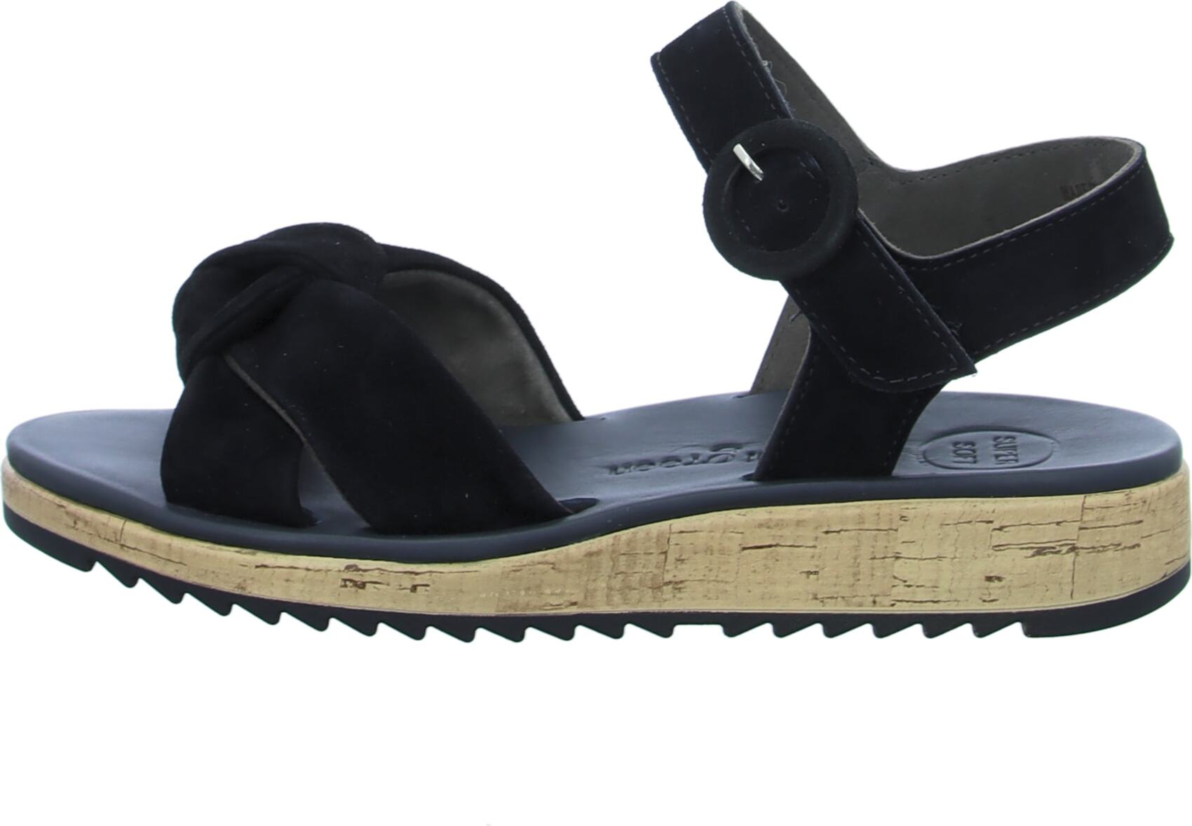 Marke: Paul GreenModell-Nr.: 6105-07Modellname: 6105Art: Damen Sandalette - Riemchen Sandalen, KreuzriemenFarbe: schwarz +, hellbraun (black)Obermaterial: Echtleder - Velour - Rauhleder (Samtziege)Innenfutter: Echtleder - dünnes Leder KaltfutterInnensohle: Echtleder - Fußbett, Super SoftWechselfußbett: nicht herausnehmbare InnensohleLaufsohle: PU-Laufsohle, Kork ZwischensohleVerschluss: Klettverschluss, Deko SchnalleAbsatz: flach - kein AbsatzSchuhform: rundGrößenangabe: fällt normal ausWeitenangabe: F - normal Weiteinterne Artikelnummer für Ihre Rückfragen: 281-00-0070