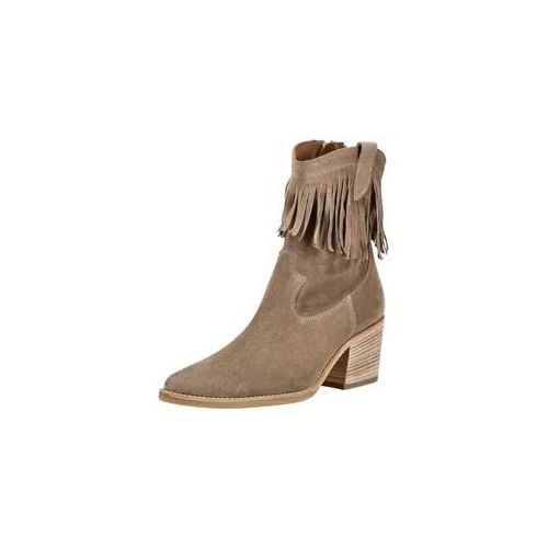 Ein Statement-Paar im Westernstil: Diese beige Paul Green Westernstiefeletten setzen auf Rauleder mit feinen Fransen und glänzenden Metallelementen. +