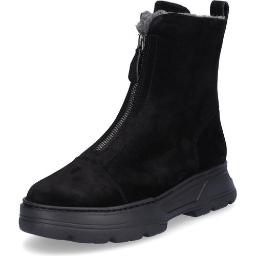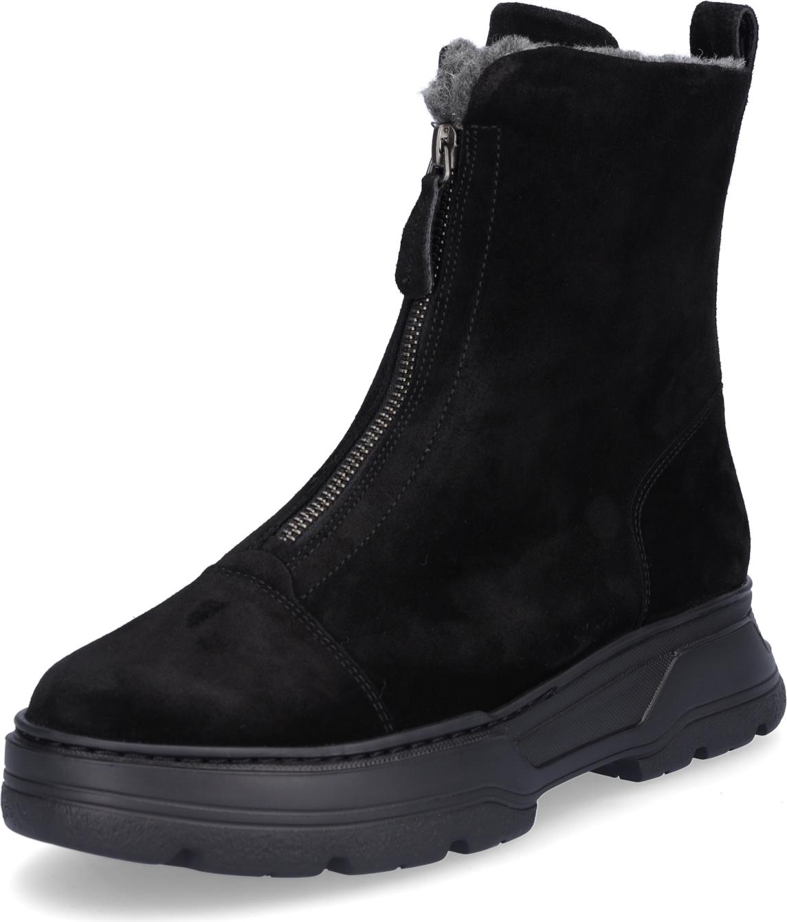 Paul Green Damen Boot aus weichem, schwarzem Velourleder mit Front-Zip, Warmfutter aus Merinowolle und Thermo-Innensohle