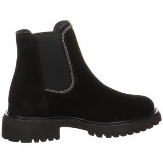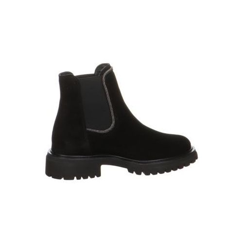 Paul Green Damen Chelsea Boot aus schwarzem Rauleder mit Blockabsatz und Profilsohle.