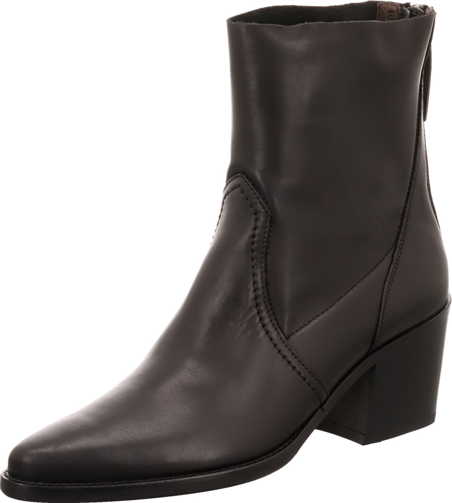 Paul Green Damen Stiefelette aus Glattleder in Schwarz mit Futter und Decksohle aus Leder, sowie 7,5 cm Blockabsatz und Reißverschluss