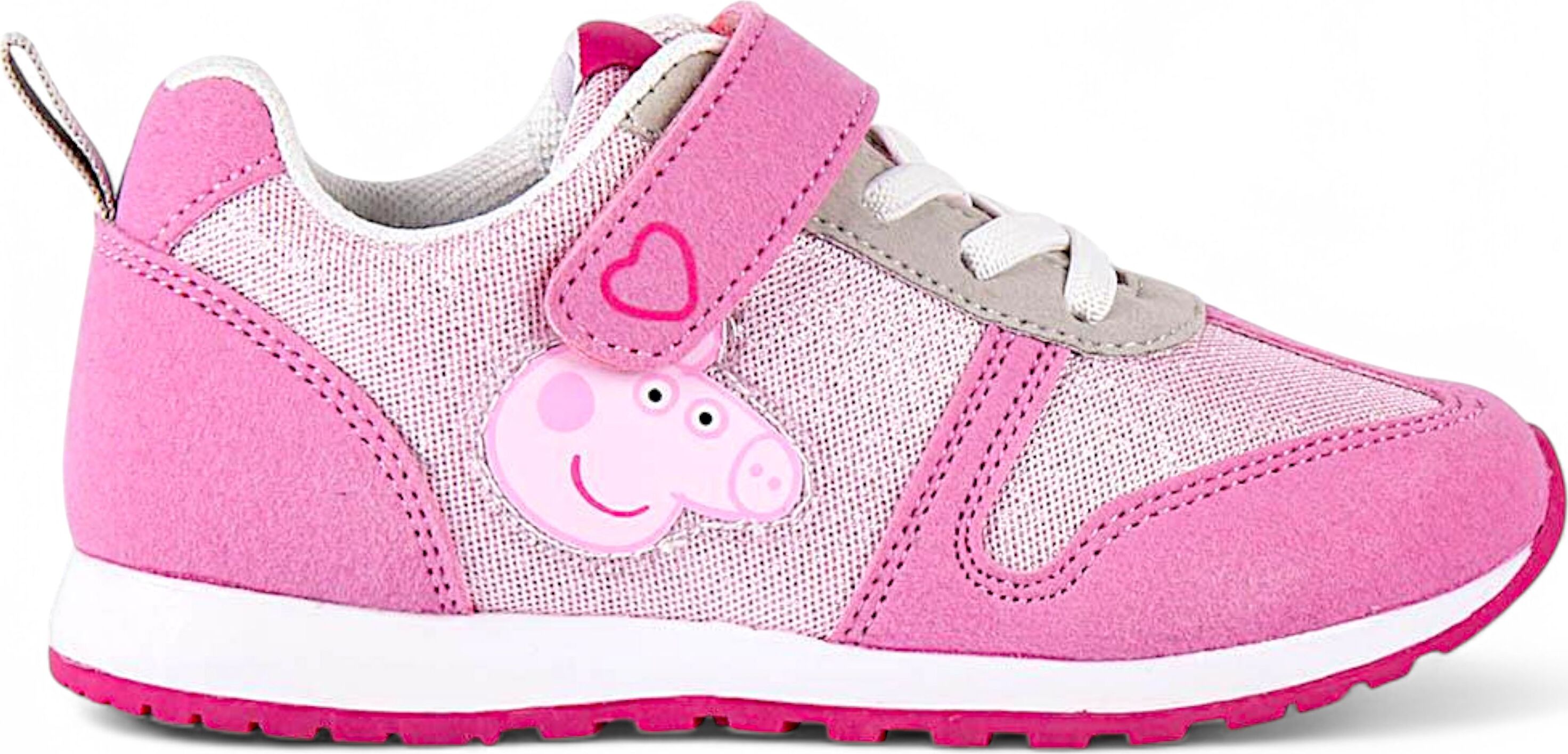 Für aktive Kinder, die Peppa Pig lieben! Diese sportlichen Sneakers vereinen Funktionalität mit einem liebevollen Design – inklusive Herzdetail und Peppa-Motiv an der Seite. Die Kombination aus Klettverschluss und Elastikschnürung macht das Anziehen kinderleicht, während die profilierte Laufsohle sicheren Halt gibt. Ideal für Kita, Freizeit oder kleine Abenteuer im Alltag.