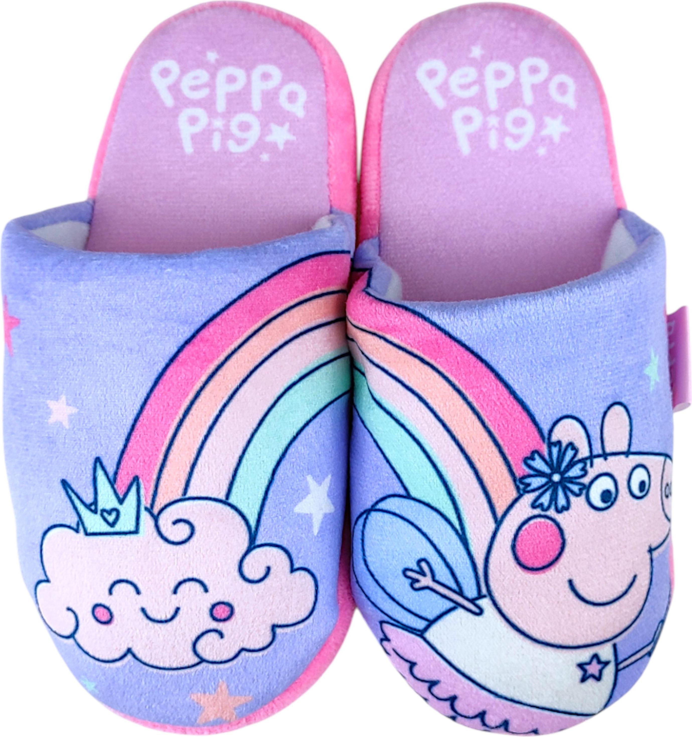 Peppa Pig Peppa Wutz und Regenbogen Hausschuh Mädchen Slipper Pantoffeln Gr. 26-33 (lila)