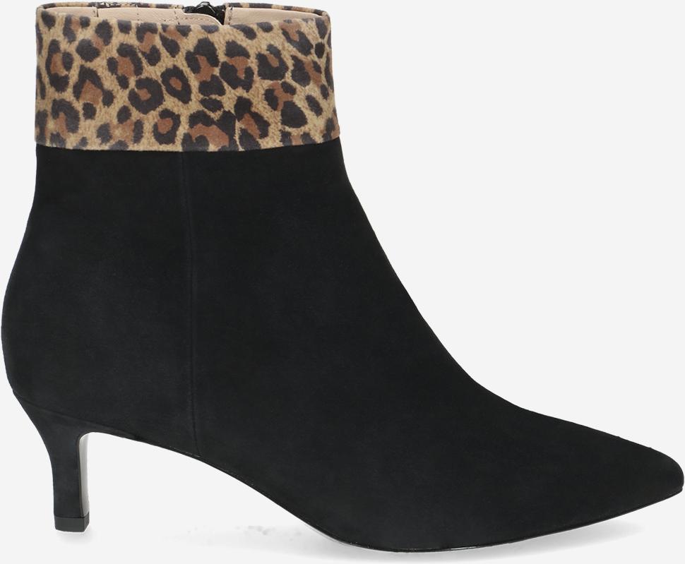 Das weiche Obermaterial wirkt edel und lässt sich vielseitig kombinieren – von der klassischen Jeans bis hin zum schicken Kleid. Besonderes Highlight ist der Umschlag mit modischem Leo-Print, der dem Schuh einen trendigen Akzent verleiht und sofort ins Auge fällt.