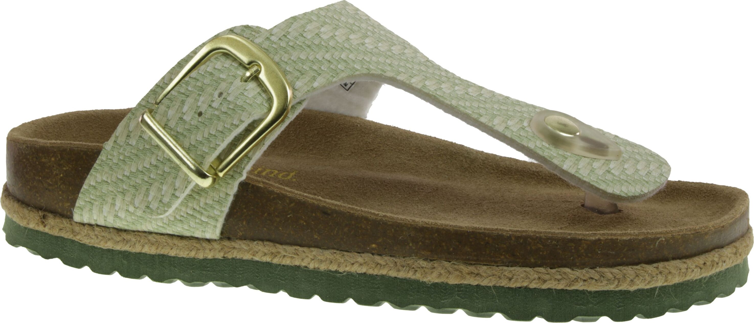dezente Damenpantolette, Zehentrenner im edlen Look Obermaterial: Synthetik – Material im geflochtenem Look Innenmaterial: Synthetik Decksohle: geformtes Lederfußbett eingebettet in einer Korksohle, diese ist rundherum mit einem Bastband verarbeitet Laufsohle: EVA (Kunststoff, der in seiner Weichheit und Flexibilität, Kautschuk oder umgangssprachlich gummiartig ist) durch die Schnalle individuell einstellbar Farben: beige und light pink/rosé