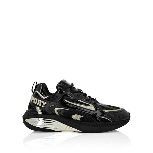 Diese Pegasus-Laufschuhe sind das Ergebnis der Kreativität des Plein Sport Labs, das sich zum Ziel gesetzt hat, Spitzentechnologie und ein einzigartiges und herausragendes Design zu vereinen. +