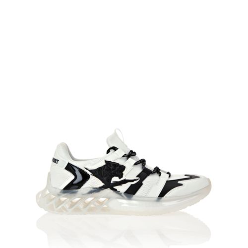 Atmungsaktives Mesh-Obermaterial und Obermaterial aus Kunstleder mit Lackdetails Ösen mit dem kultigen Tiger-Aufnäher der Marke Schnürsenkel mit Logo der Marke Plein Sport auf der Fersenkappe Gummierte, ergonomische, stoßdämpfende, ultraleichte, perforierte Hightech-Zwischensohle Für optimalen Grip geformte Laufsohle Innenfutter