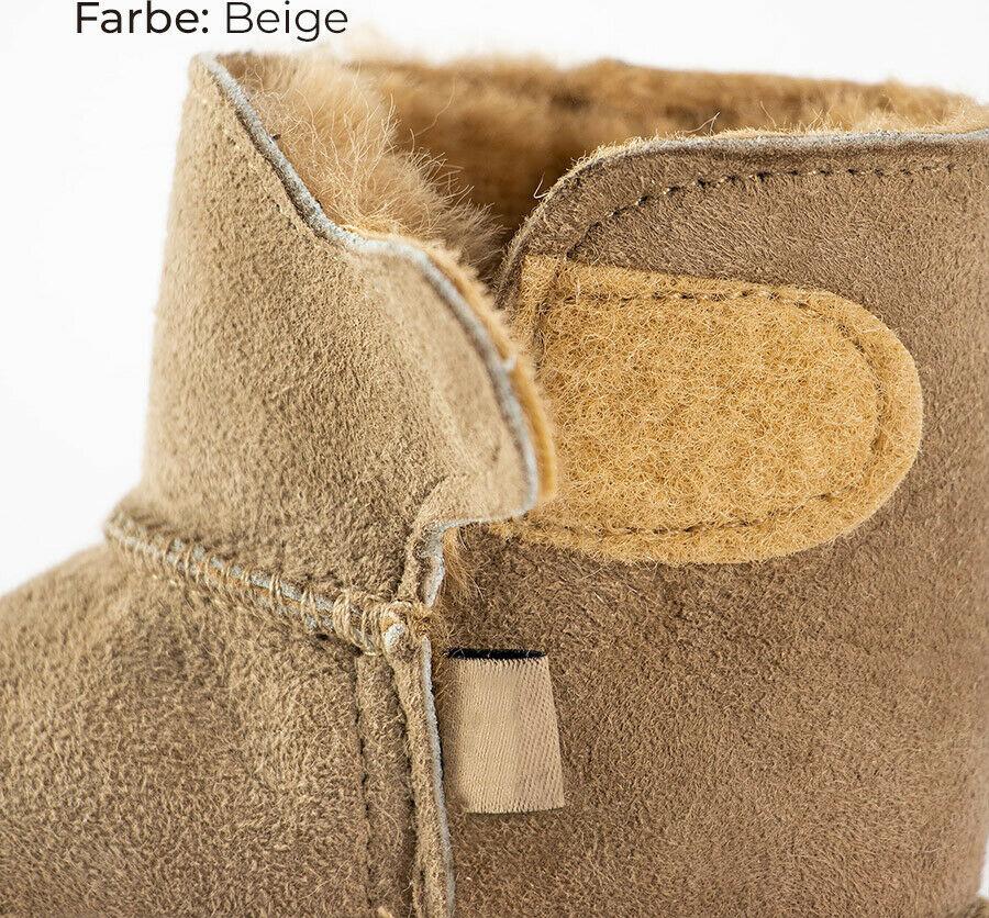 Provellus Kinder Hausschuhe Merinoschaffell Leder Baby S-L Warm Weich Hausschuh (beige/braun)
