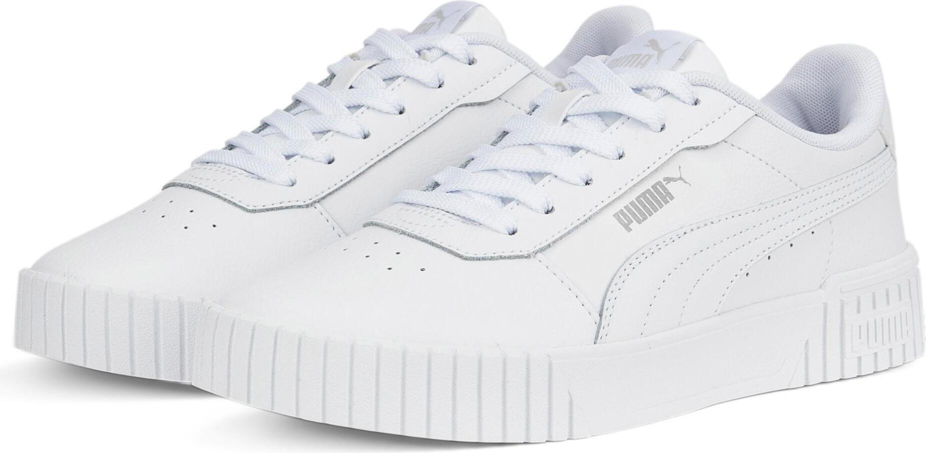 Die Farbkombination in Puma White, Puma White und Puma Silver verleiht den Carina 2.0 Sneakers eine elegante und zeitlose Optik.
