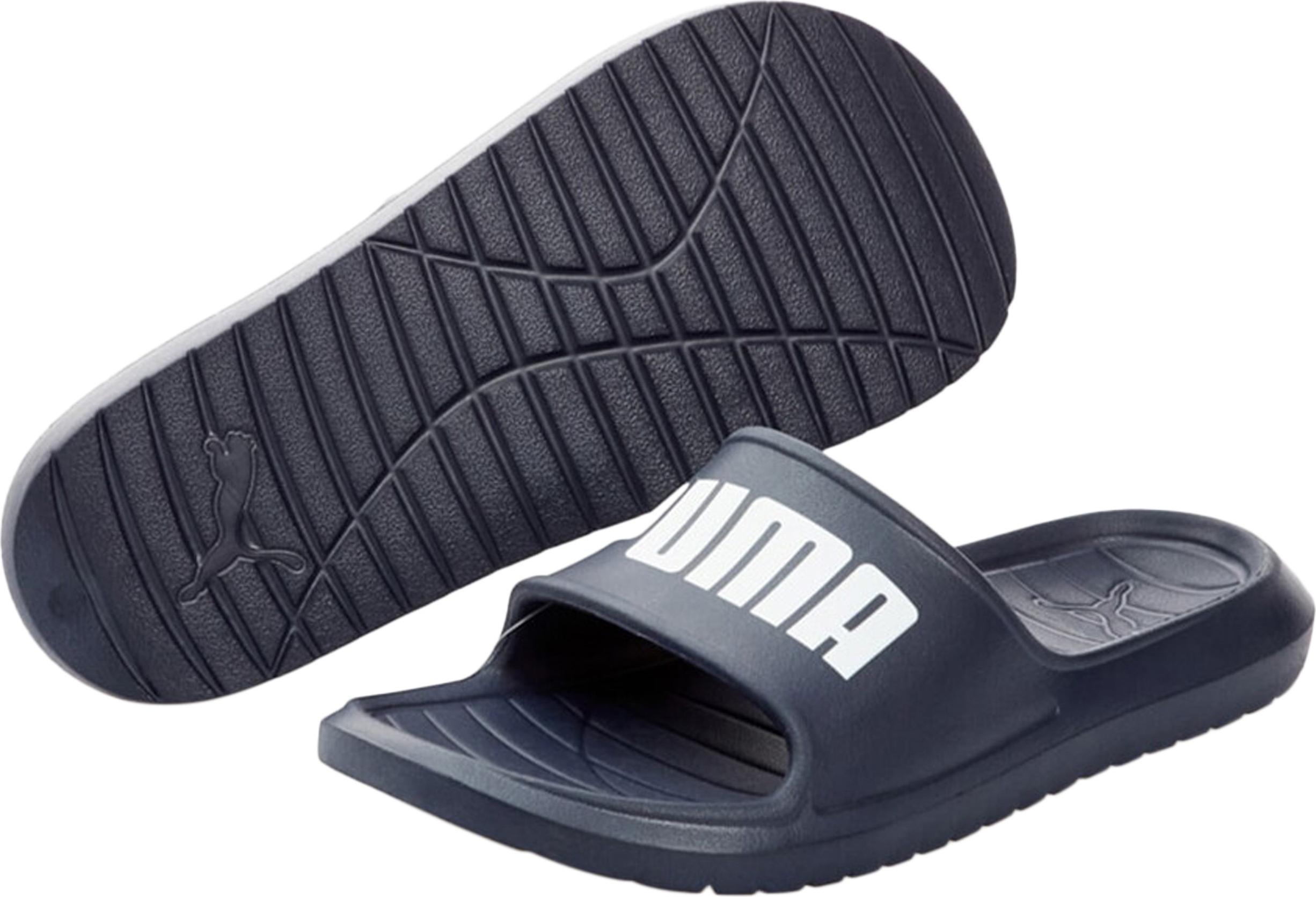 Die PUMA "Divecat v2 Lite" Badesandale in der attraktiven Farbkombination marine-weiß wird Dein neuer Begleiter für Strand- und Pooltage sein. Das Obermaterial aus Synthetik macht die Sandalen nicht nur besonders pflegeleicht, sondern auch extrem strapazierfähig. Der sportliche Stil und das Fehlen eines Verschlusses machen sie zu einem praktischen und bequemen Schuhwerk für jede Gelegenheit. +