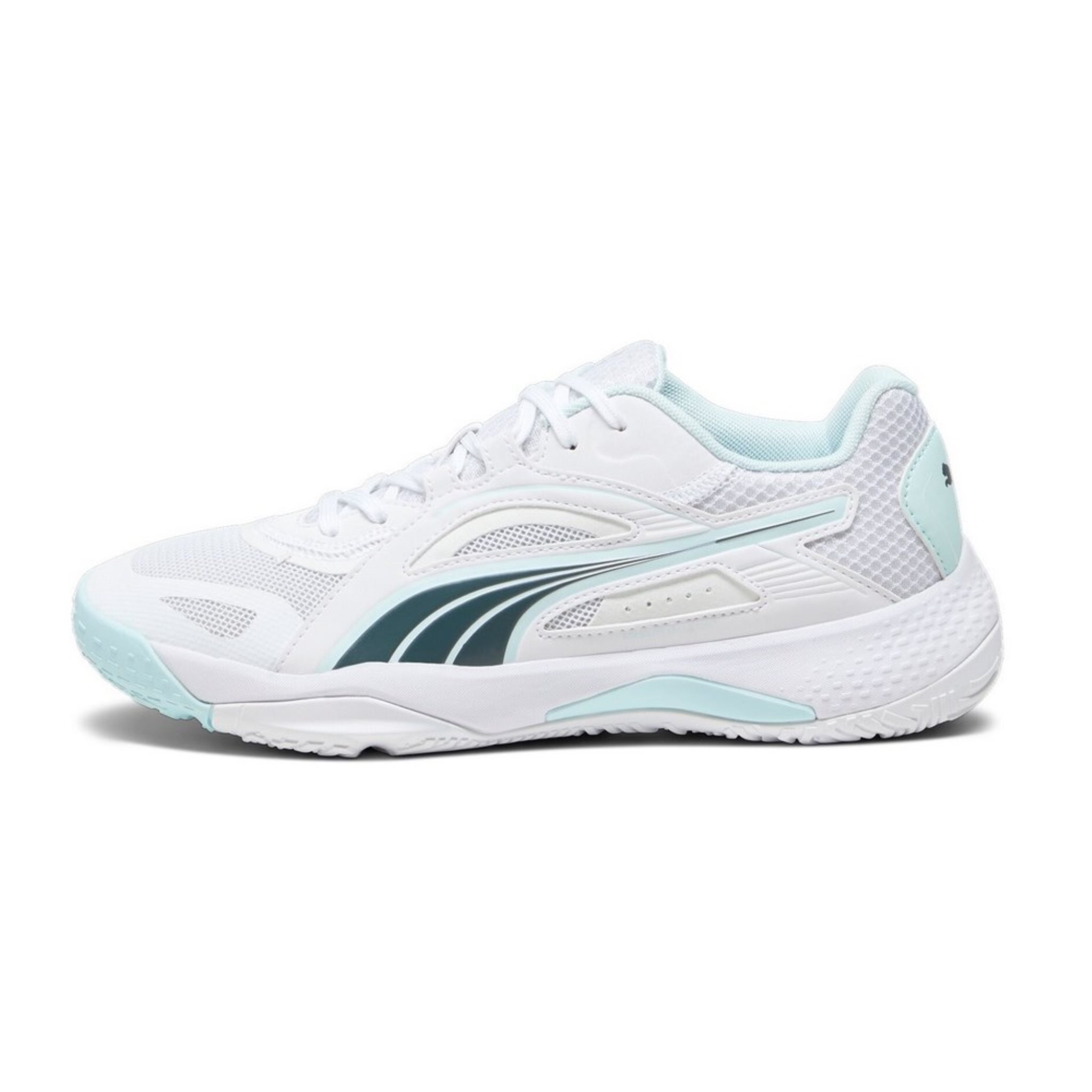 die neueste Ausgabe des Solarstrike ist da und bereit für alleser ist dein bester Indoor-Verbündeter, vollgepackt mit herausragenden Funktionen, die helfen, Spitzenleistungen zu erzielenein atmungsaktives Mesh-Obermaterial kombiniert mit einer hervorragenden Dämpfung für ultimativen Komfort, während StabilitySkeleton+, und StabilitySpine+, zusammen deine Füße unterstützenbereite dich darauf vor, dein Spiel auf die nächste Stufe zu bringen Ventmesh+, bietet leichte Atmungsaktivität und KomfortStabilitySkeleton+, für hervorragende Stabilität auf der Innen- und AußenseiteGripProtect+, auf der Innenseite für Haltbarkeit und Stabilitätschneller Rebound-Schaumstoff für überlegene Dämpfung und EnergieumwandlungStabilitätSpine+, unterstützt die Energierückführung und verhindert gleichzeitig das Verdrehen des MittelfußesCMEVA-ZwischensohleNicht abfärbende GummilaufsohlePUMA Formstrip seitlichPUMA Cat-Logo an der Ferse Farbe: weiss/grau/hellblauModell 2023