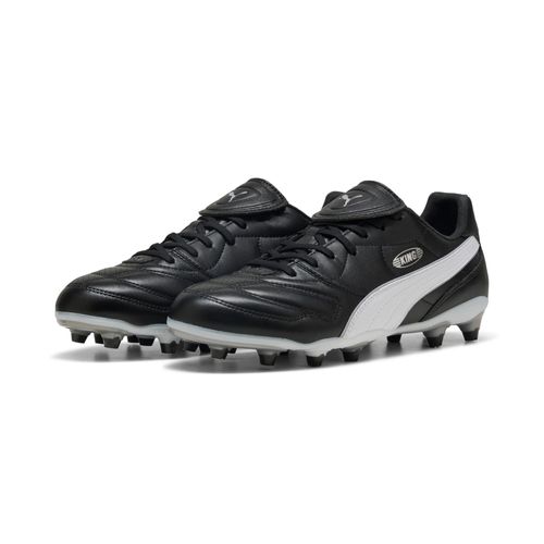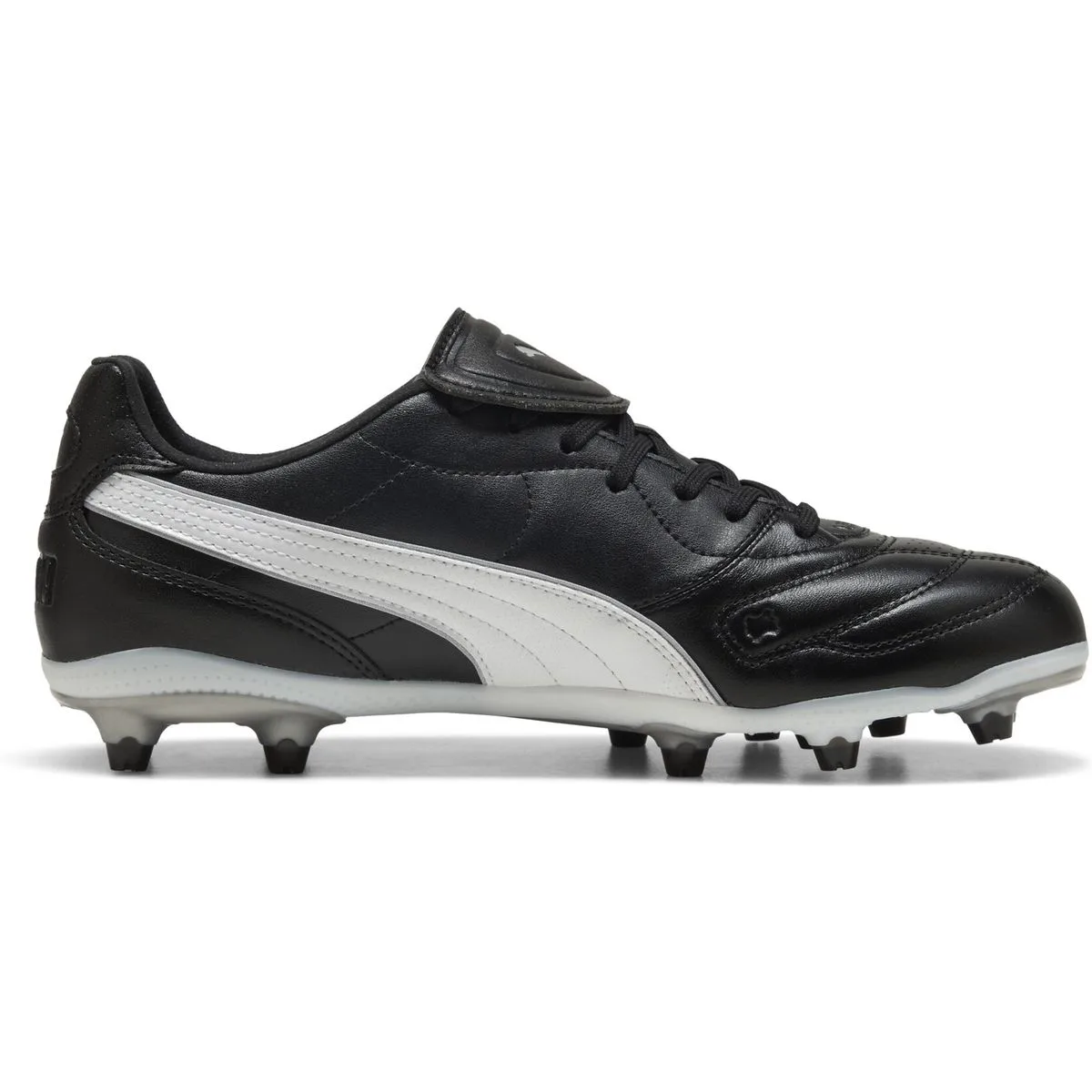 Puma KING LIGA FG/AG Fußballschuh für Rasenplätze und Kunstrasen, mit weichem Lederobermaterial (schwarz/silber/weiß)