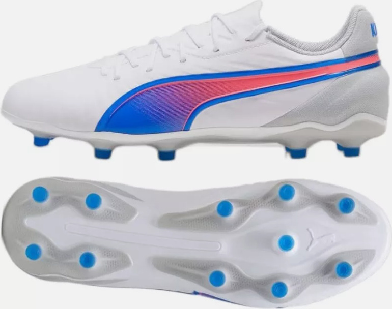 Puma KING MATCH FG/AG Fußballschuh für Rasenplätze (weiß/blau/grau)