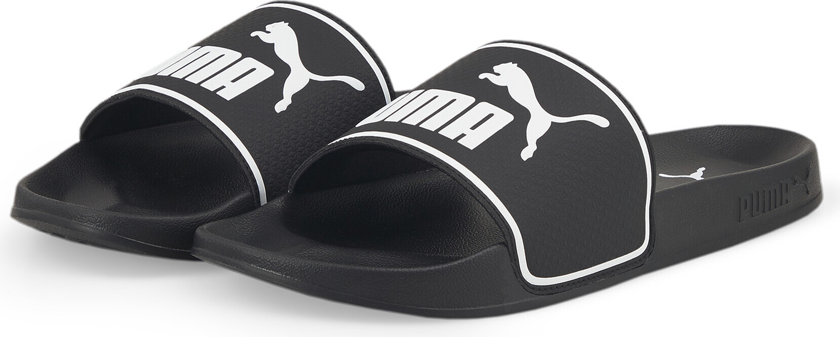 Puma LEADCAT 2.0 BX Badesandale gepolsterter Lederriemen, geformtes Fußbett (schwarz/weiß)