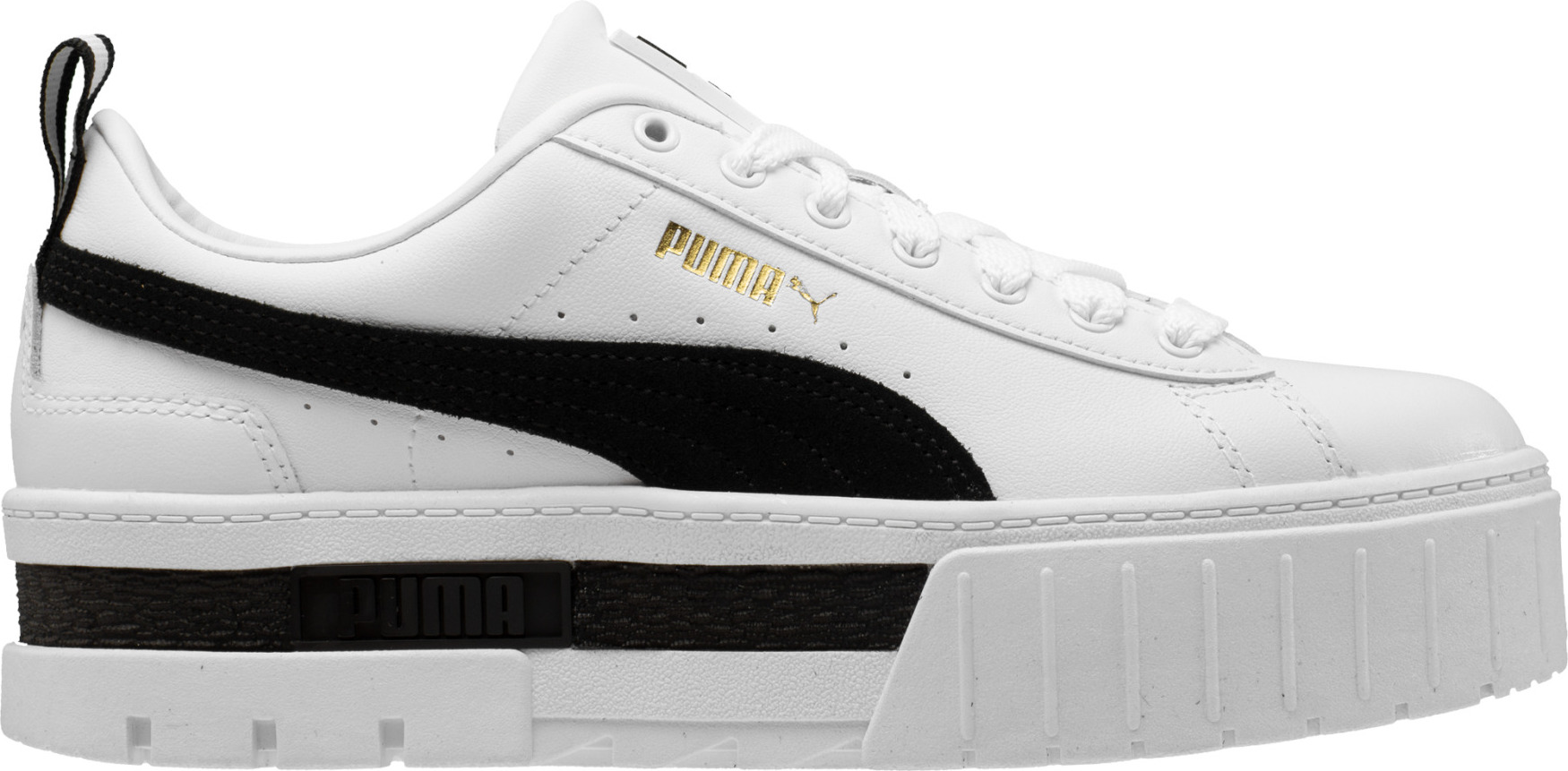 Der Mayze nimmt Designelemente aus der urbanen Umgebung auf und verleiht ihnen einen besonderen Touch. Mit ihrem Obermaterial aus luxuriösem Leder, schicken Veloursleder-Overlays, auffallenden Farbkontrasten und der Plateau-Sohle ziehen diese Sneakers alle Blicke auf sich.