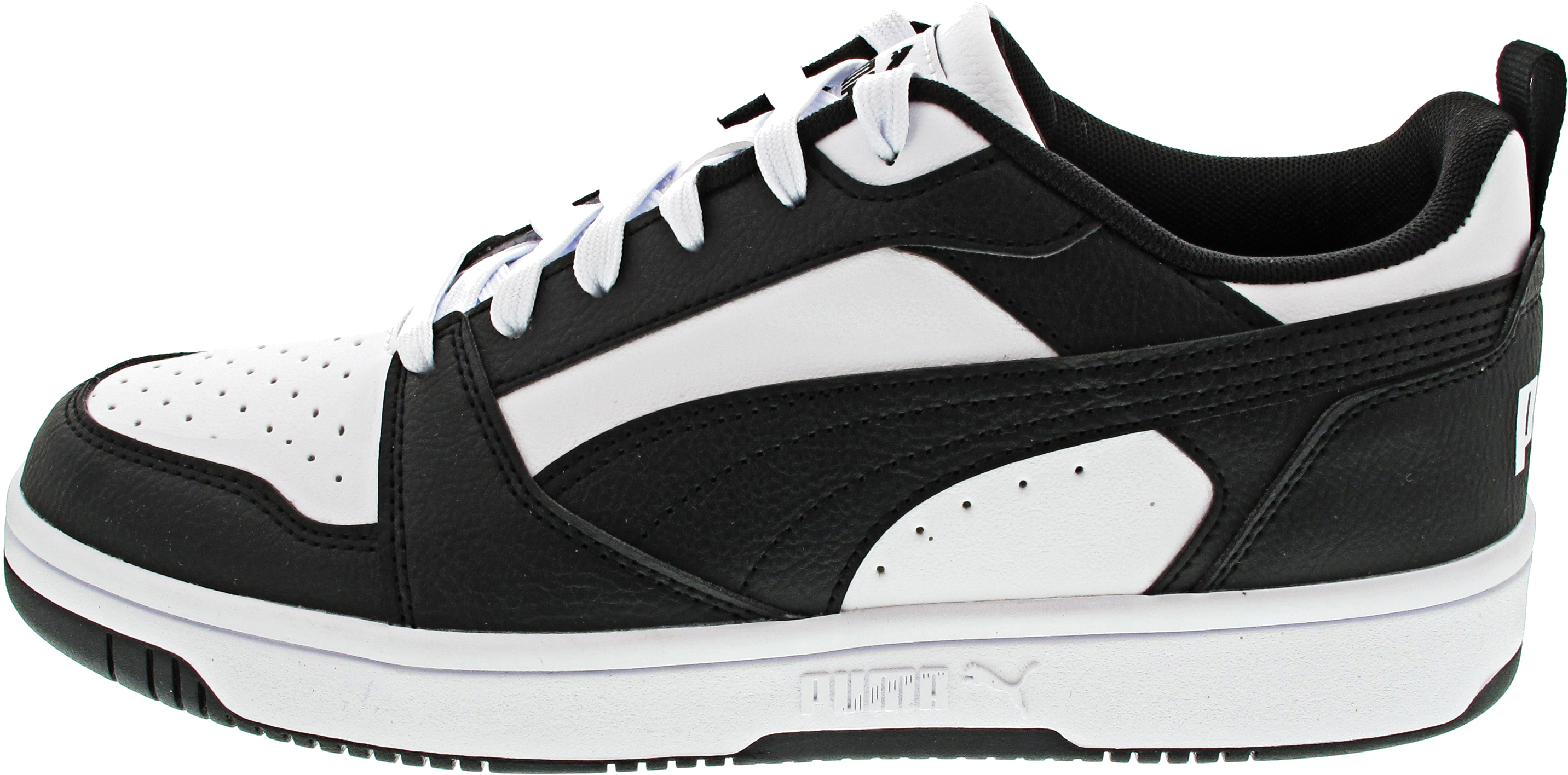 Puma REBOUND V6 LOW Sneaker niedrig geschnitten, mit Schnürverschluss, aus getrommeltem Leder (weiß/schwarz)