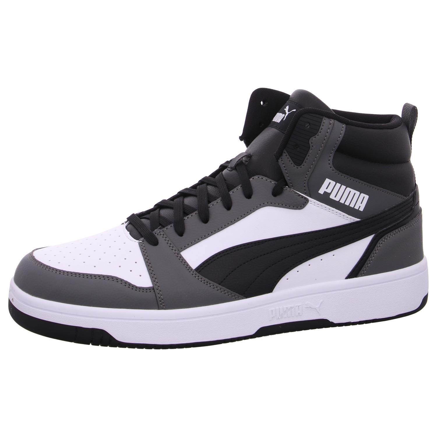 Puma REBOUND V6 Sneaker knöchelhoch, wasserabweisendes Obermaterial, weiche Innensohle (weiß/schwarz/grau)