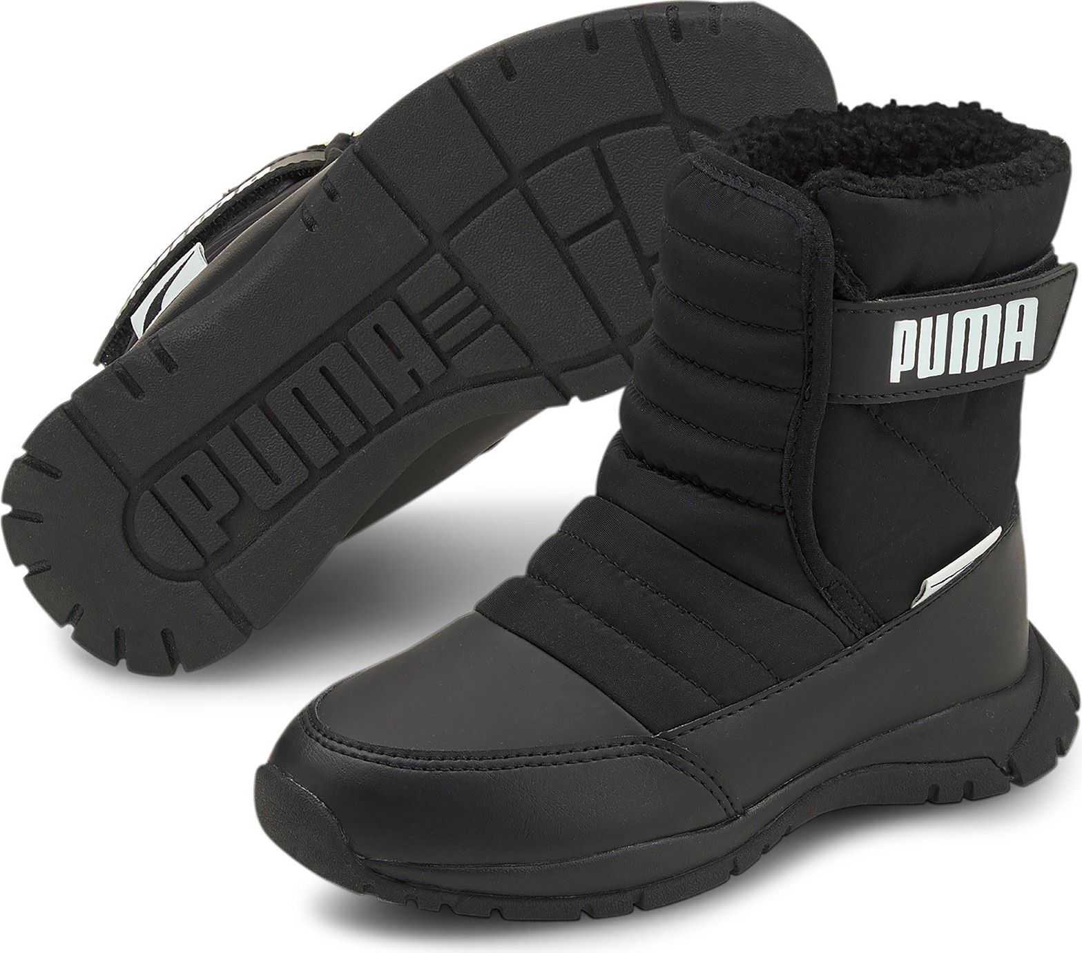wild und futuristisch kombinieren diese markanten Stiefel Coolness und Gemütlichkeitausgestattet mit wasserabweisenden Materialien, einem flauschigen Innenfutter, einem Spritzschutz für zusätzlichen Schutz und einem Klettverschluss für individuellen Komfort, halten diese schneetauglichen Schuhe kleine Füße an kalten, nassen Tagen warm CMEVA: Vorgeformtes EVA-Material von PUMA für maximale Performance bei minimalem Gewichtstrapazierfähiges, wasserabweisendes Obermaterial mit warmem, flauschigem Futterweiche EVA-Zwischensohle für verbesserte DämpfungAußensohle aus abriebfestem Gummi für maximalen GripKlettverschluss für eine individuelle PassformPUMA Wortmarke am oberen RiemenLabel mit PUMA Formstrip seitlich an der FersePUMA Kinder: für Kinder zwischen 4 und 8 Jahren Farbe: schwarzModell 2021/2022/2023