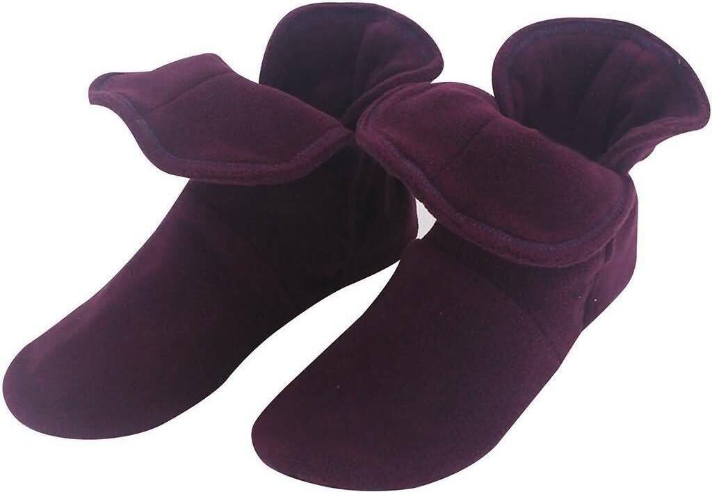 RAIKOU Hausstiefel Haussocken super flauschige Hüttenschuhe Hausschuh aus Micro Fleece mit ABS und Rutschfester Sohle (Granat)