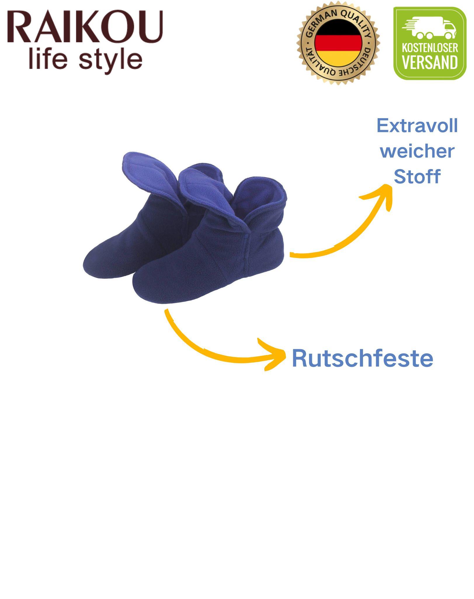 RAIKOU Hausstiefel Hüttenschuhe Stoppersocken für Damen Herren und Kinder Hausschuh (aus Miro Fleece Super Flauschige) mit ABS und Rutschfester Sohle (blau)