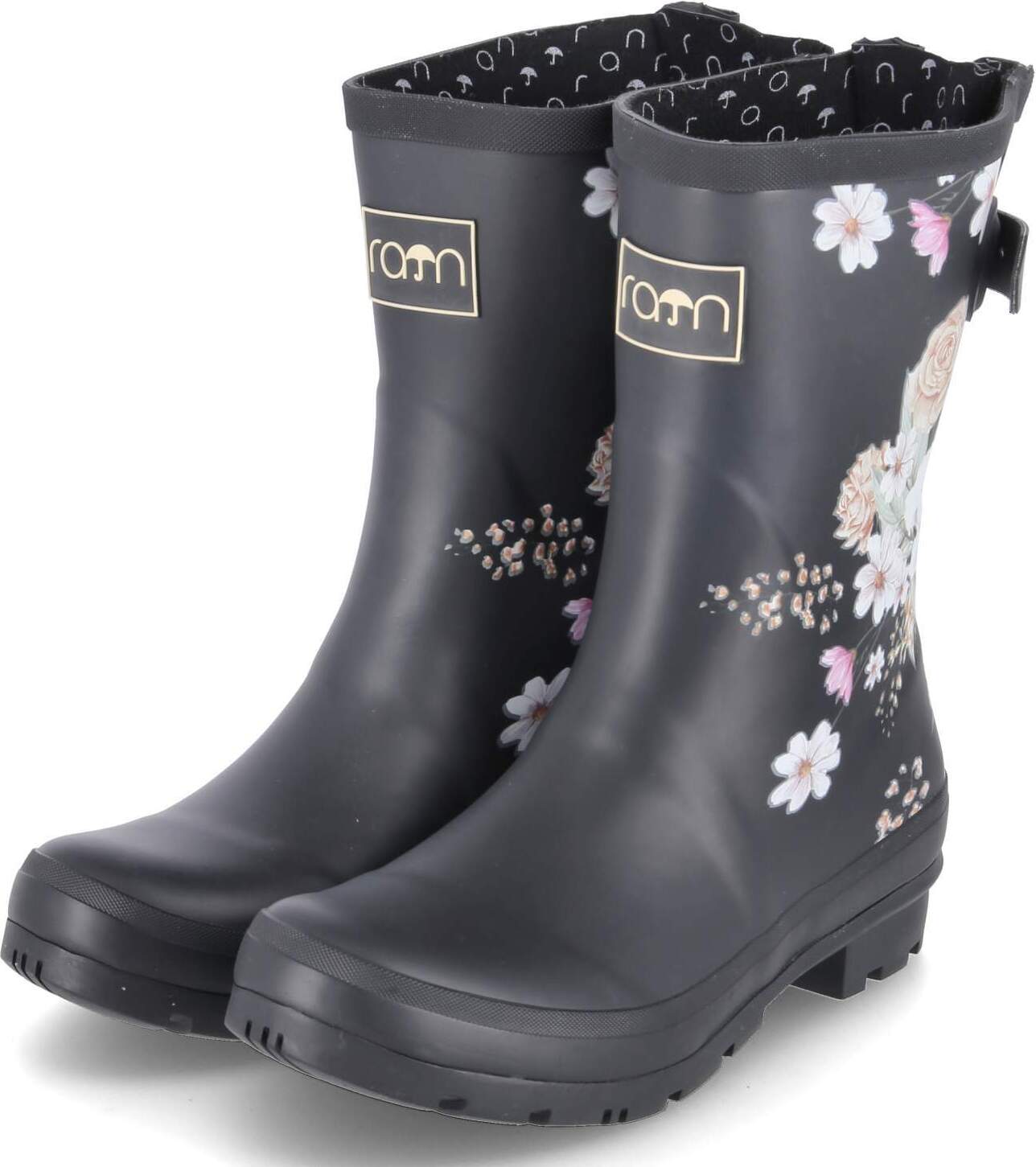 Die Rajn Damen Wetter- und Regenstiefel BLOSS in Schwarz aus strapazierfähigem Gummi sind die perfekte Wahl für stilbewusste Frauen, die auch an regnerischen Tagen nicht auf modische Details verzichten möchten. +