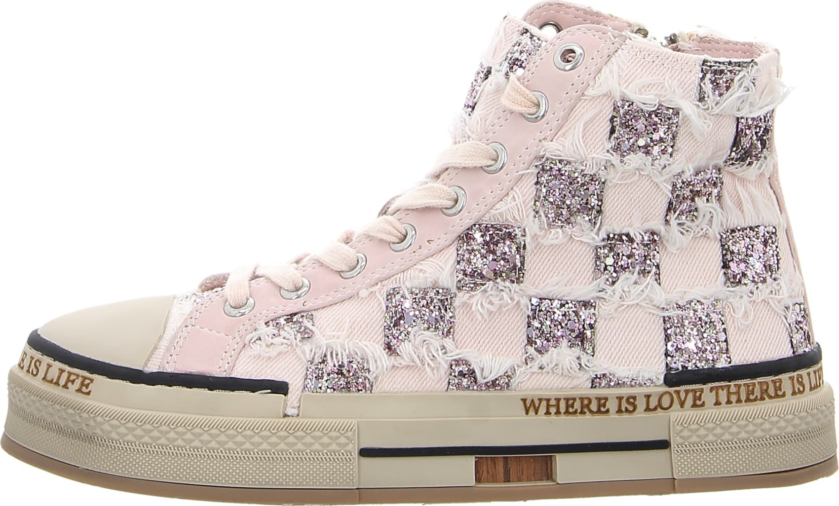 Dank des stylischen glitzernden Karomotivs und der sportiven Silhouette ist der Sneaker ein optisches Highlight. Die hohe Sneaker Sohle sorgt für bequemes Gehen.