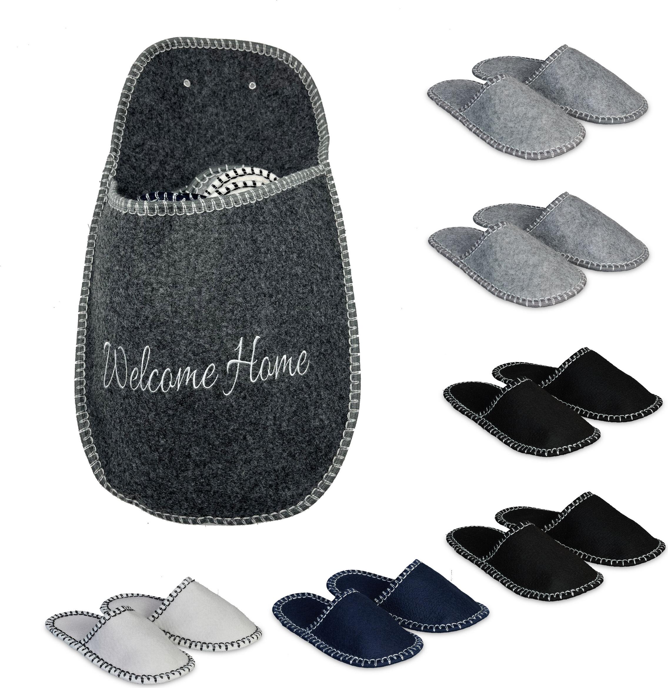 RELAXDAYS 6 Paar Gästehausschuhe aus Filz Hausschuh (7-tlg) Welcome Home (grau/schwarz)