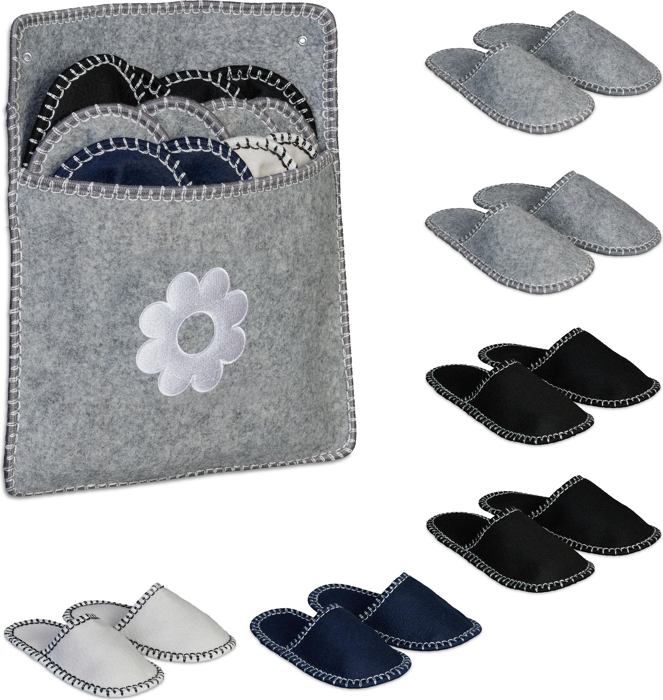 RELAXDAYS 6 Paar Gästehausschuhe aus Filz Hausschuh (blau/grau/schwarz)