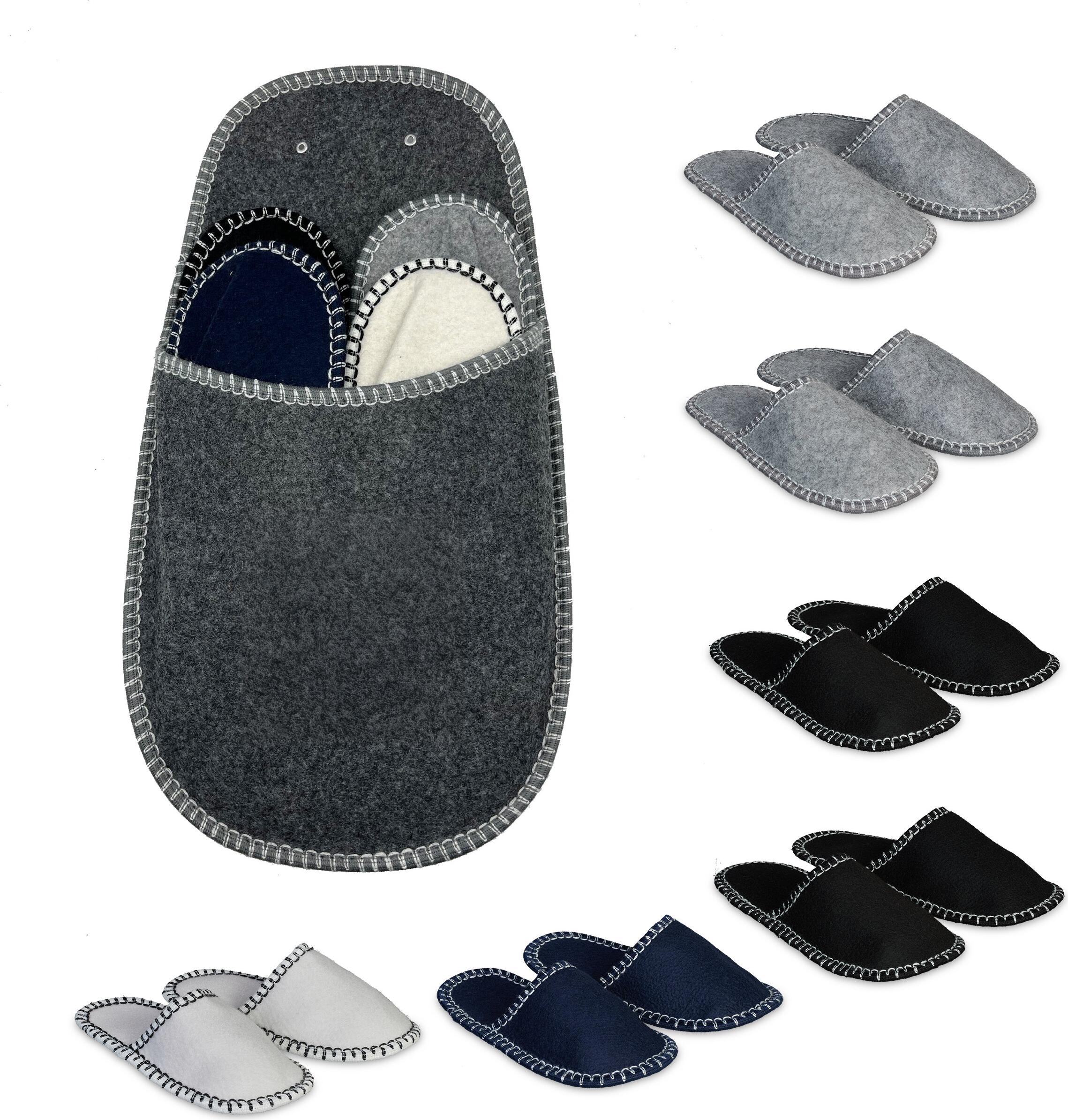 390 g- Material: Filz, Schaumstoff- Farben: Grau, Dunkelblau, Schwarz, WeißHausschuhe-Set aus Filz- 6 Paar in 3 verschiedenen Größen von 36 bis 45- Hochwertiges Filzmaterial für Wärme und Komfort- Unisex-Design geeignet für Damen, Herren und Kinder- Rutschfeste Sohle sorgt für sicheren Halt- Für Wohnung und Haus, Hotels und Museen- In praktischer Aufbewahrungstasche für die WandLieferumfang- 6 Paar Gästehausschuhe- 1x Aufbewahrungstasche- Dekoartikel sind nicht im Lieferumfang enthalten