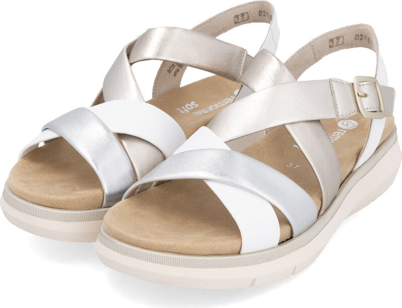Remonte Riemchensandale, Keilabsatz, Sommerschuh, Sandalette mit Kreuzbandage (gold/weiß/silber)