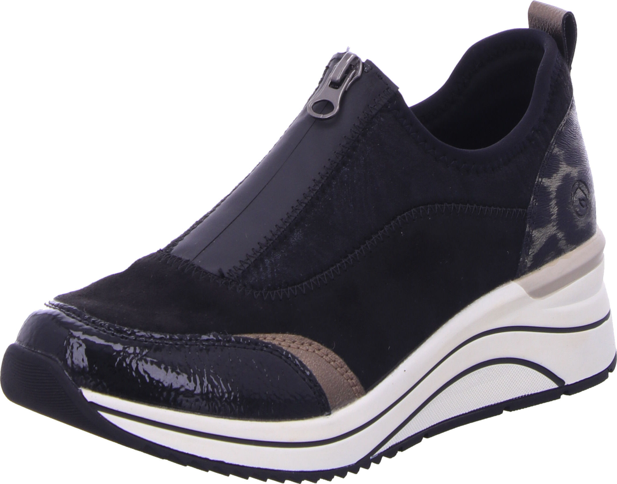 Remonte Elisabeth Hurley-Collection Slip-On Sneaker, Keilsneaker, Slipper, Schlupfschuh, Freizeitschuh, vegan (gold/schwarz)