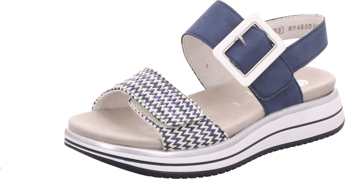 Remonte Keilsandalette, Sommerschuh, Sandale, Komfortschuh mit praktischen Klettverschlüssen (blau/weiß)