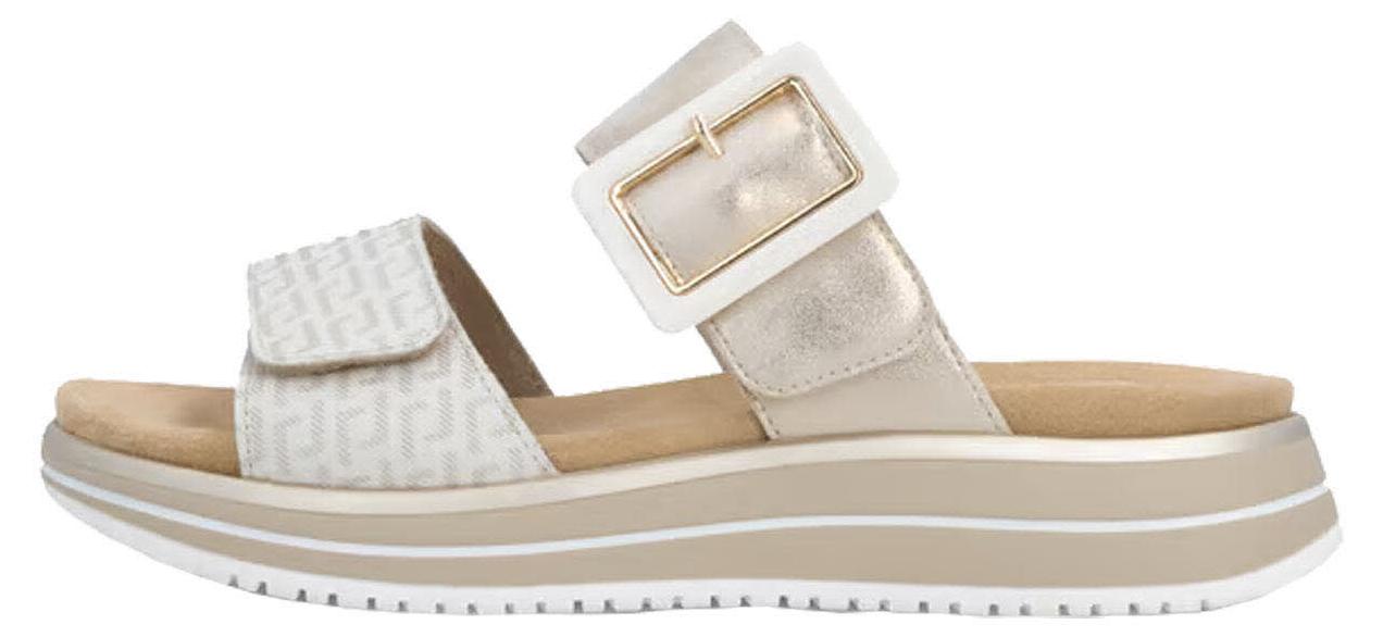 Pantolette REMONTE, Damen, Gr. 43, sanftes weiß, goldfarben, Leder, Lederimitat, metallic, Schuhe Pantolette, Sommerschuh, Strandschuh, Schlappen mit Lite´n Soft-Ausstattung