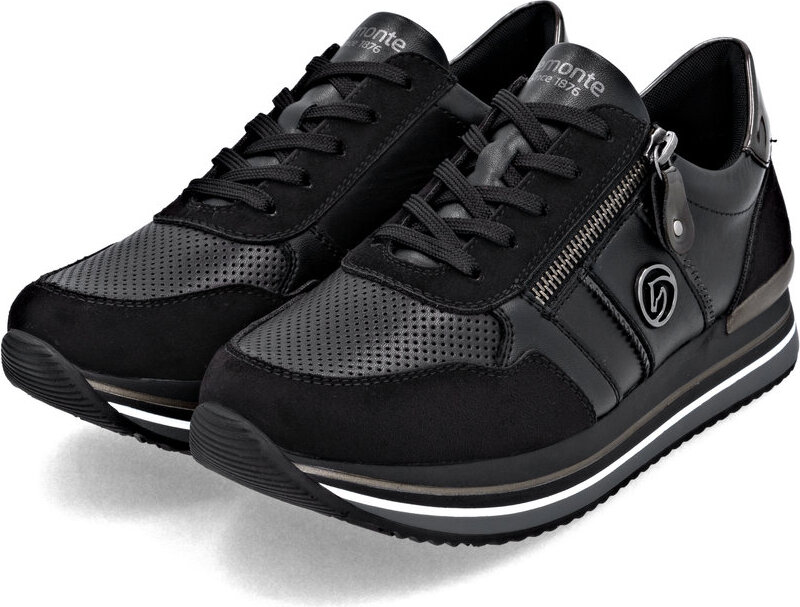 Remonte Plateausneaker Schnürschuh, Halbschuh, Freizeitschuh mit gepolstertem Schaftrand (grau/schwarz)