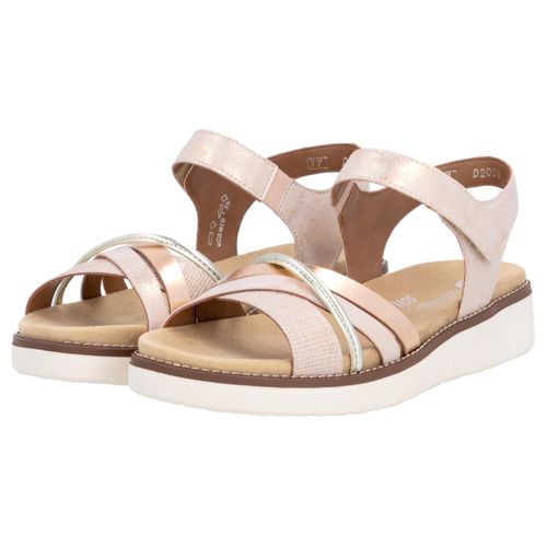 Remonte Riemchensandale, Keilabsatz, Sommerschuh, Sandalette mit herausnehmbarer Softeinlage (gold/rosa)