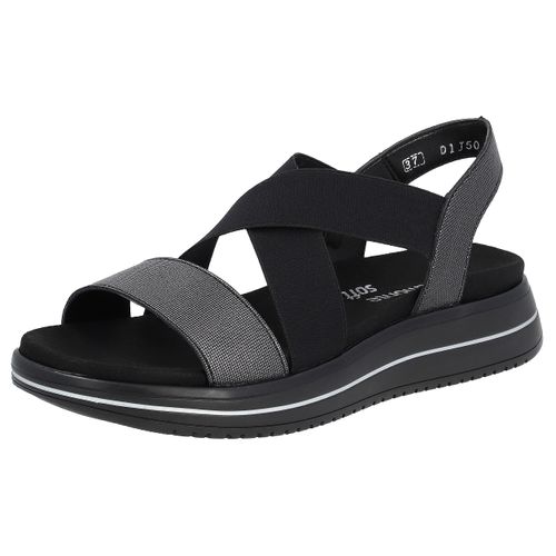 Remonte Riemchensandale, Sommerschuh, Sandalette, Keilabsatz, mit praktischem Gummizug (schwarz)