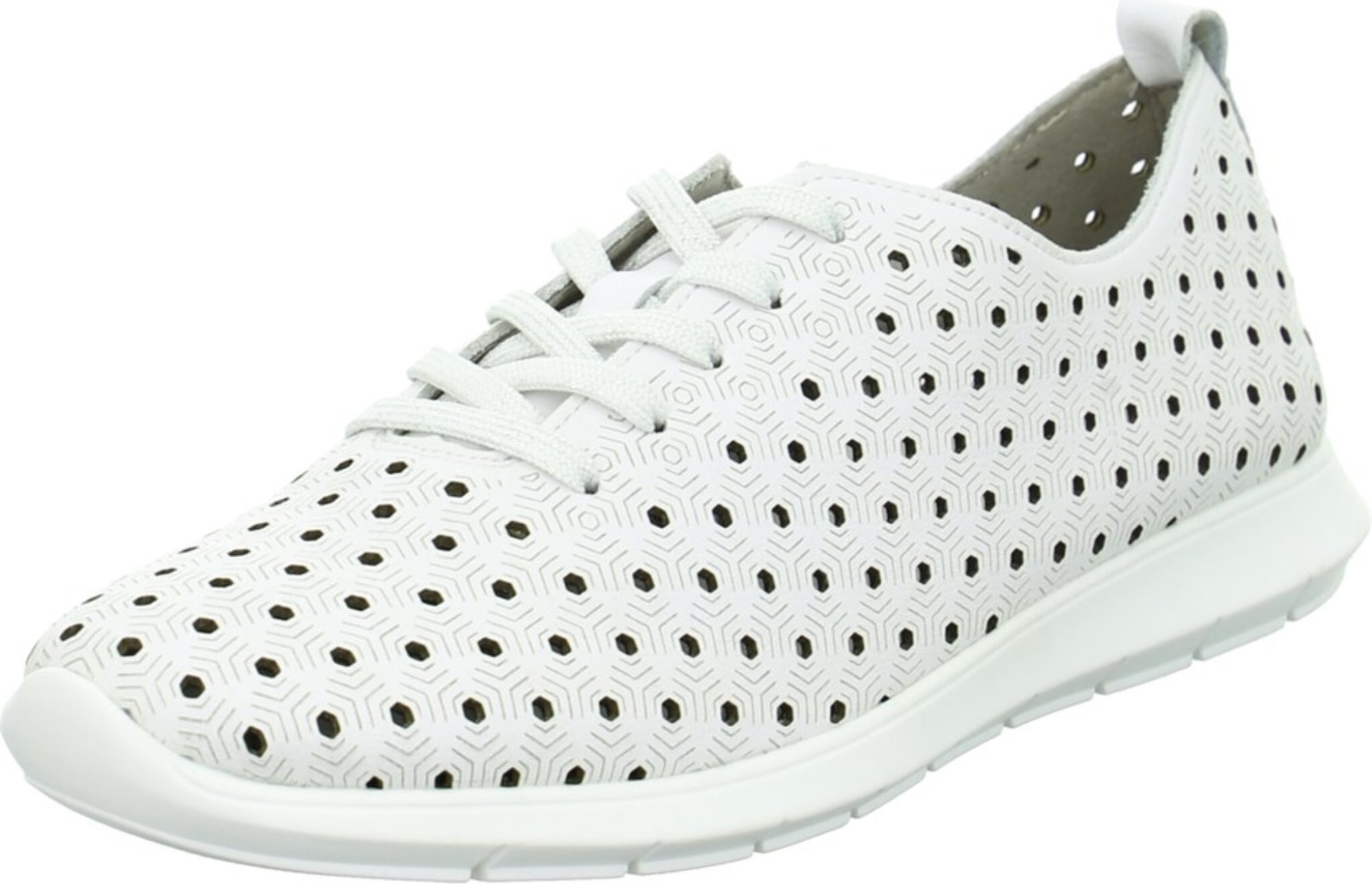 Leicht, gemütlich und sportiv ist dieser weiße, sportliche Schnürschuh von Remonte. +