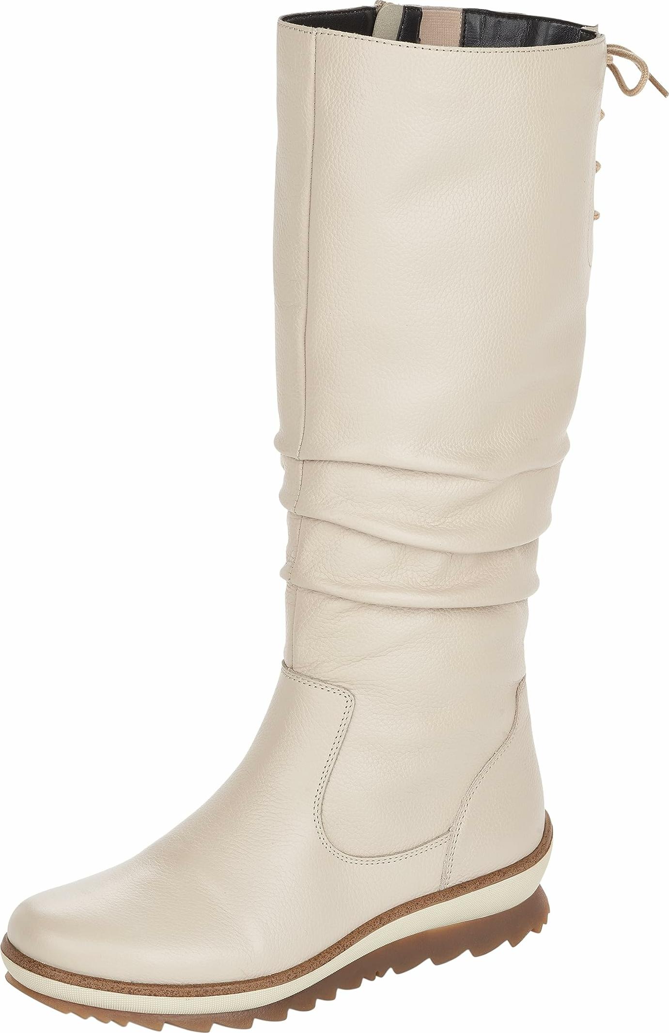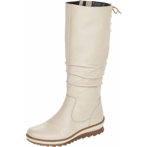 Er wurde aus hochwertigem Echtleder in Beige gefertigt. Der Schaft ist dabei stilvoll in Falten gelegt und an der Rückseite mit einer kleinen Zierschnürung versehen.