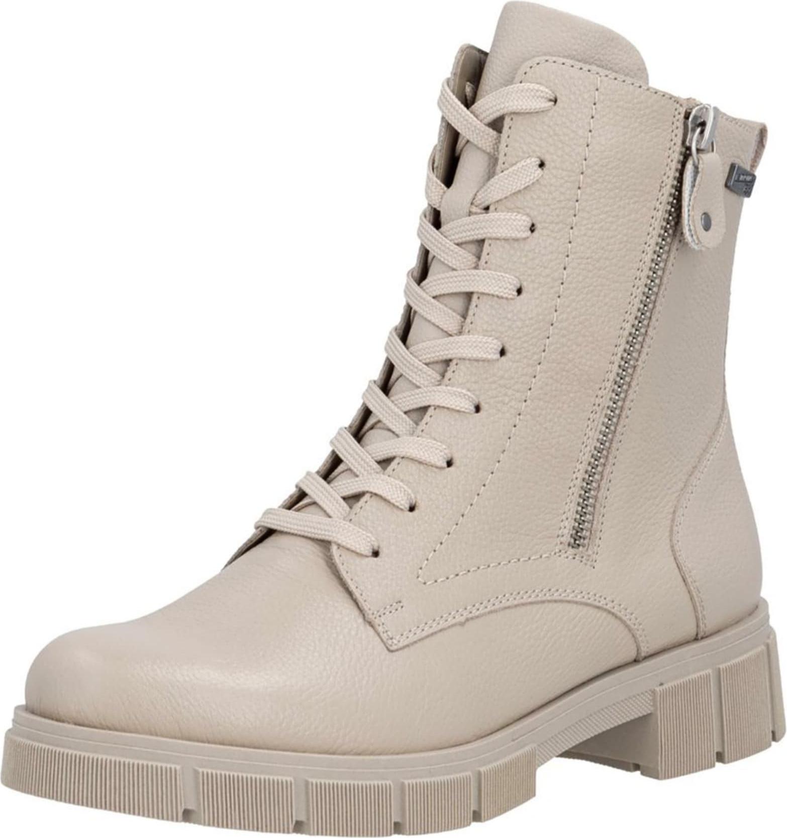 Klassisch feminin und chic: Diese beigen remonte Schnürstiefel aus Glattleder sind ein wahrer Hingucker! Trotz Schnürung kann der Schuh ganz einfach mit einem Reißverschluss geschlossen werden. +