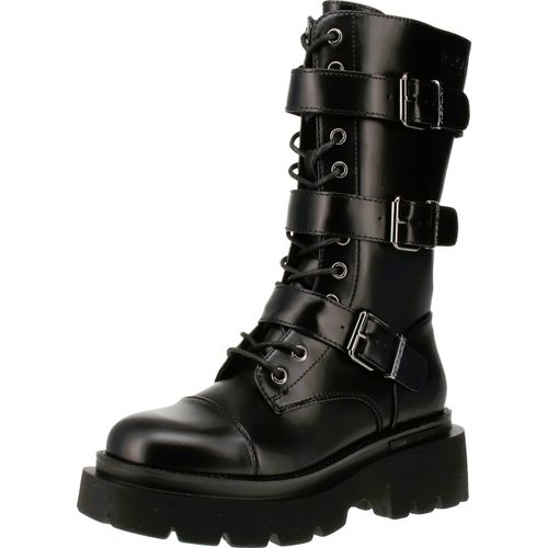 Replay Damen Schnürstiefel im Biker-Style aus Lederimitat in Schwarz mit drei Dekorschnallen, Synthetikfutter, Ortholite Innensohle aus Textil und Plateau-Profilsohle