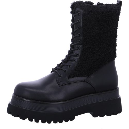 Das Obermaterial aus Glattleder und weichem Teddy-Stoff verleiht dem Schuh eine stylishe Optik mit textiler Raffinesse. Die hohe Plateausohle sorgt für einen modernen Look und gleichzeitig für optimalen Halt auf winterlichen Untergründen.
