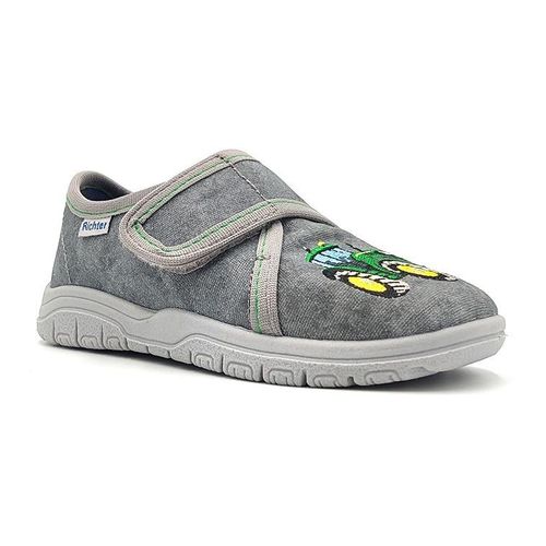 Richter Mailo Hausschuh Klettschuh, Kindergarten Schuh mit Traktor-Motiv (grau)