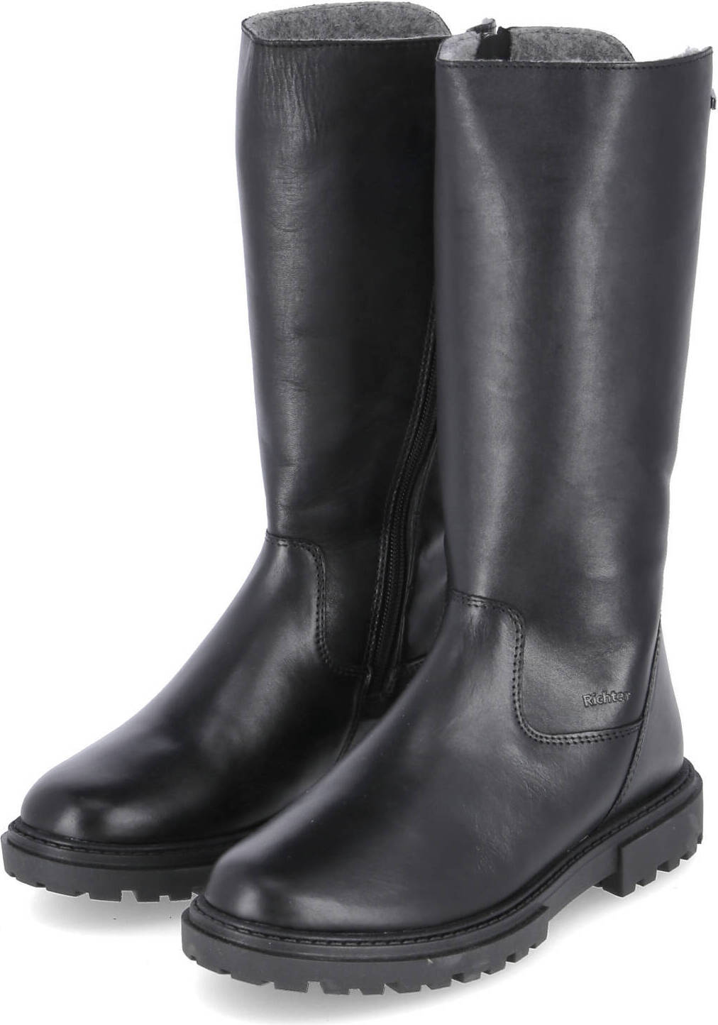 Richter Mädchen Winterstiefel Schwarz Glattleder - Reißverschluss - wasserfest, atmungsaktiv - verstärkter Fersenbereich - flexible, rutschhemmende Profillaufsohle - warmes Futter.
