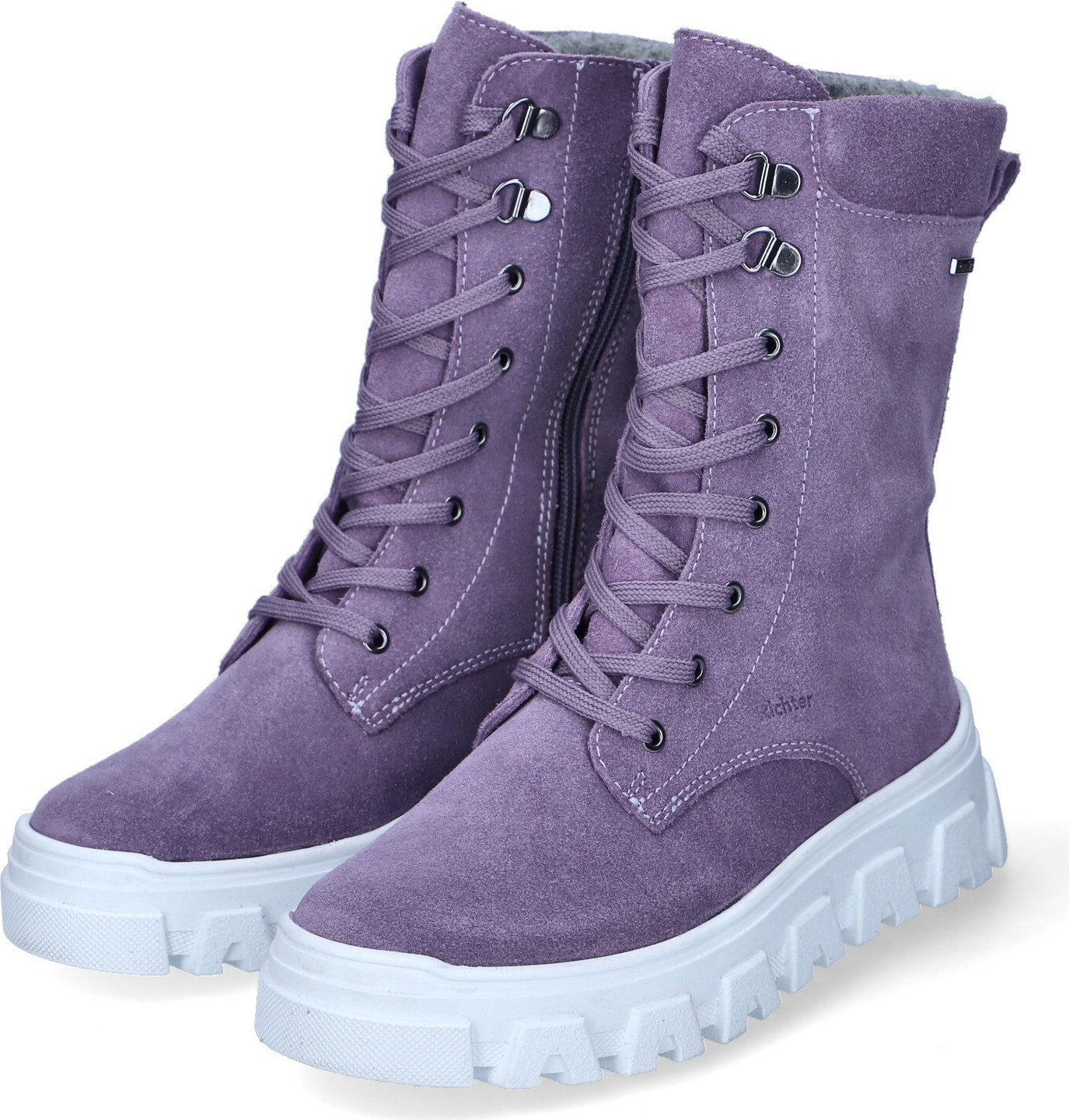 Richter Mädchen Winterstiefeletten/ Schnürstiefeletten Lila Rauleder - wasserfest und atmungsaktiv (RichTEX) - Reißverschluss mit Klettverschlusssicherung - modische Ziernähte - dezente Markendetails - Anziehlasche - leicht gepolsterter Einstieg - warmes Fleecefutter - leicht gepolsterte, herausnehmbare Decksohle - flexible, rutschhemmende Laufsohle mit Profil .