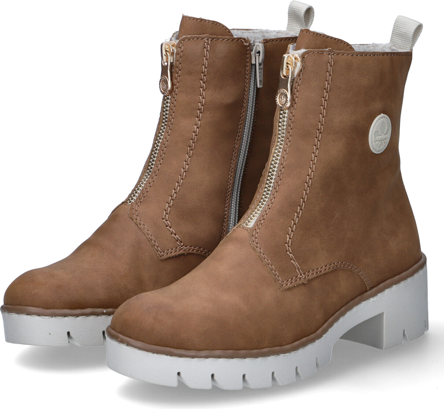 Diese Vielzahl an Komforteigenschaften der Antistress-Schuhe kombiniert Rieker mit modischen Designs, die besonders durch ihre Liebe zum Detail überzeugen. Bereits seit 1874 produziert das Unternehmen, das sich in fünfter Generation im Familienbesitz befindet, Schuhmode und Accessoires von bewährter Qualität.Die Rieker Antistress-Features:Leichter: Minimum an GewichtFlexibler: Höchstmaß an Flexibilität (",Barfußgefühl",)Mehr Platz: Eine Passform, die dort Raum bietet, wo sich das Volumen der Füße im Laufe des Tages vergrößertMehr Schockabsorption: Optimale Schockabsorption auf verschiedenen OberflächenDie Stiefeletten zeichnen sich durch folgende Merkmale aus:Modell: X5754, Abteilung: DamenschuheObermaterial: Glattleder, Innenmaterial: Synthetik, Laufsohle: TR-Sohle, Decksohle: weiche DecksohleAbsatztyp: Blockabsatz, Absatzhöhe: 4.8 cm, Schafttyp: Halbschaft, Schafthöhe: 14 cmWeite: Normal (F 1/2), Verschluss: Reißverschluss