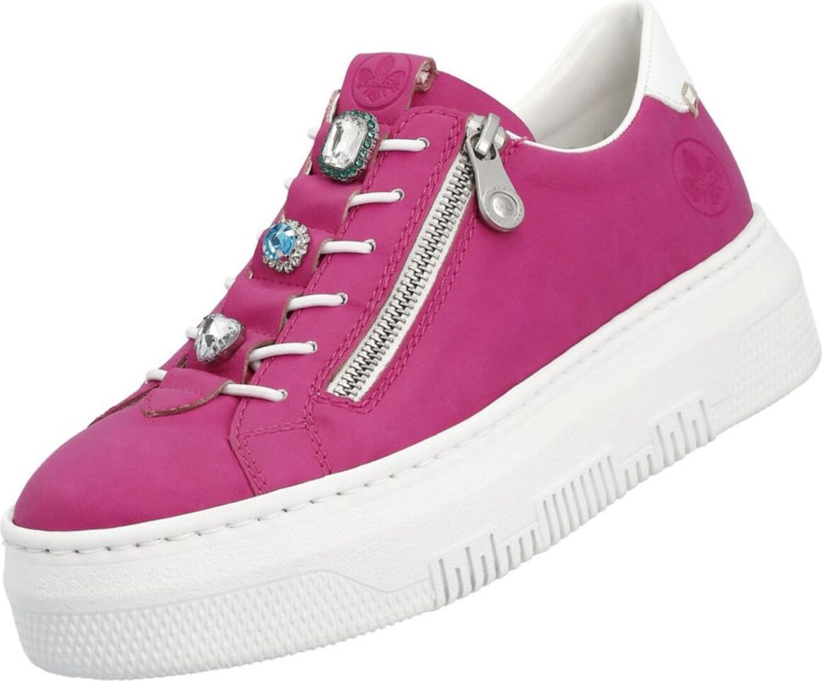 Tauchen Sie ein in die Welt des Glamours mit diesen trendigen Rieker Sneakern in Rosa! Die hübschen Schmucksteine verleihen diesen Freizeitschuhen eine extra Portion Eleganz, während das Nubuklederimitat und das kontrastierende Design in Fuchsia-Weiß sie zu einem absoluten Hingucker machen. Der sportliche Stil und die Plateausohle sorgen für maximalen Tragekomfort und machen diese Halbschuhe zum idealen Begleiter für jeden Tag. +