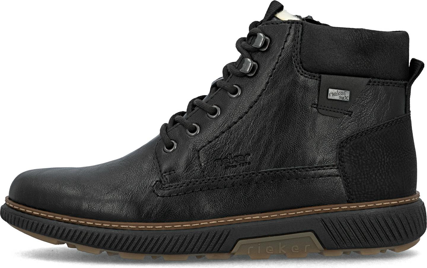Herren Schnürboot von Rieker aus Lederimitat in Schwarz mit Lammwollfutter und Wechselfußbett aus Fleece.